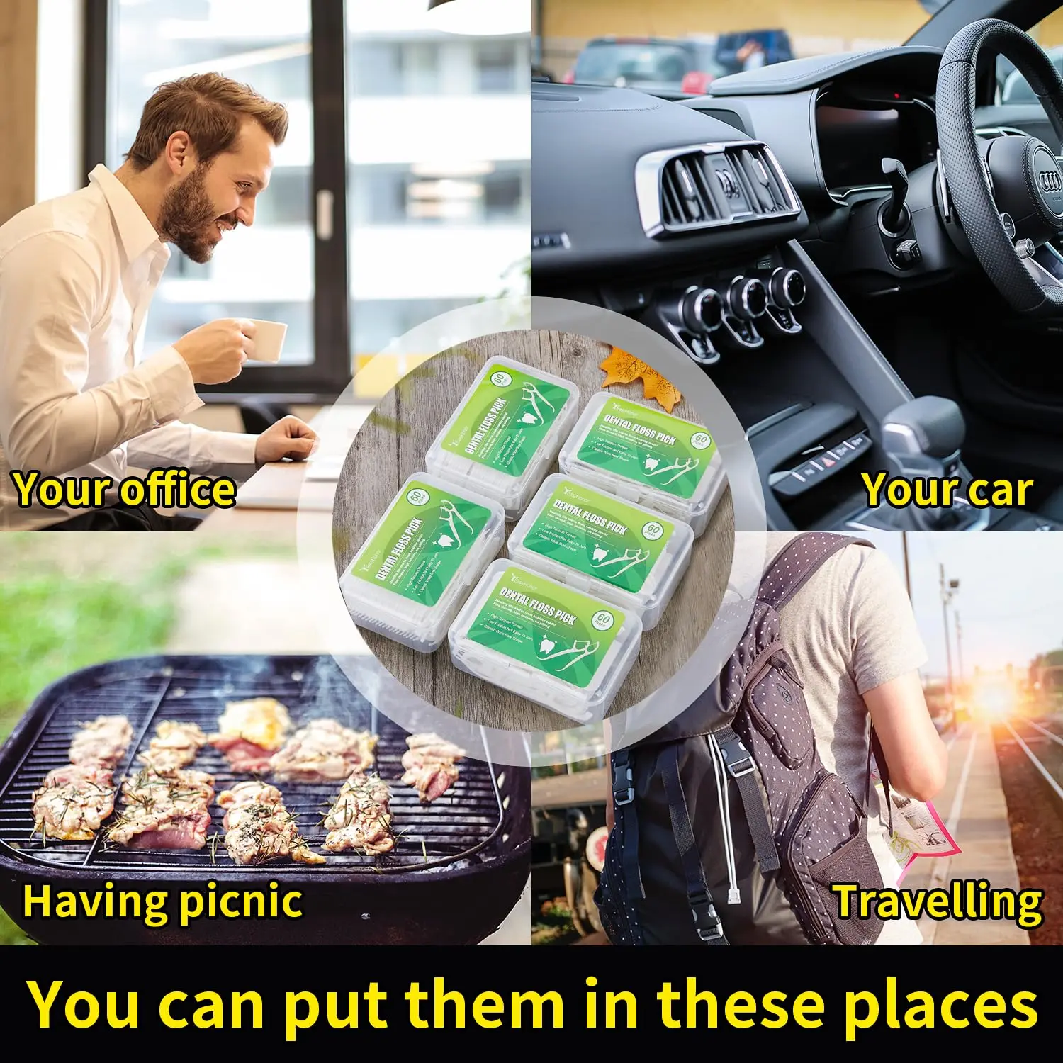 Conveniente para uso em trânsito, essas picaretas dentárias descartáveis oferecem fio dental rápido e fácil.